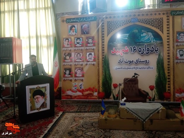 یادواره ۱۶شهید روستای موت آباد و گرامیداشت دهه بصیرت و روز مقاومت همزمان با شهادت بانوی دوعالم ام ابیها فاطمه الزهرا و سالروز شهادت سپهبد شهید حاج قاسم سلیمانی با حضورسردار کریمی فرمانده سپاه روح الله استان مرکزی و ثامنی سرپرست بنیاد شهرستان اراک ، مسئولین نظامی و انتطامی خانواده محترم شهدا و مردم شهید پرور روستای موت آباد برگزار شد.