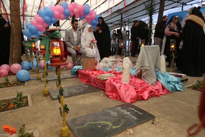 به گزارش نوید شاهد، ویژه برنامه «ازدواجهای آسمانی» با رعایت فاصلهگذاری اجتماعی و پروتکلهای بهداشتی با حضور خانوادههای عروس و داماد ، خادمان شهدا و زائران با مشارکت فرهنگسرای رضوان و سازمان بهشت زهرا (س) در بهمنماه 1400 در قطعه 40 (فانوس ها) در گلزار شهدای بهشت زهرا (س) برگزار شد. در ادامه تصاویر ثبت شده توسط «علی سلطان محمدی» از این ویژه برنامه را میبینید.