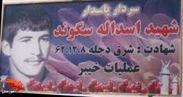 شهید اسد الله سگوند داوطلبانه به عضویت بسیج درآمد و توسط سپاه پاسداران به جبهه اعزام گردید تا اینکه با رشادت های فراوان توانست به سمت فرماندهی گروهان برسد و سرانجام در هشتم اسفندماه 1362 در عملیات خیبر به دست رژیم بعثی عراق به شهادت رسید. پیکر پاکش را در گلزار شهدای شهرستان شوش دانیال (ع) به خاک سپردند.
