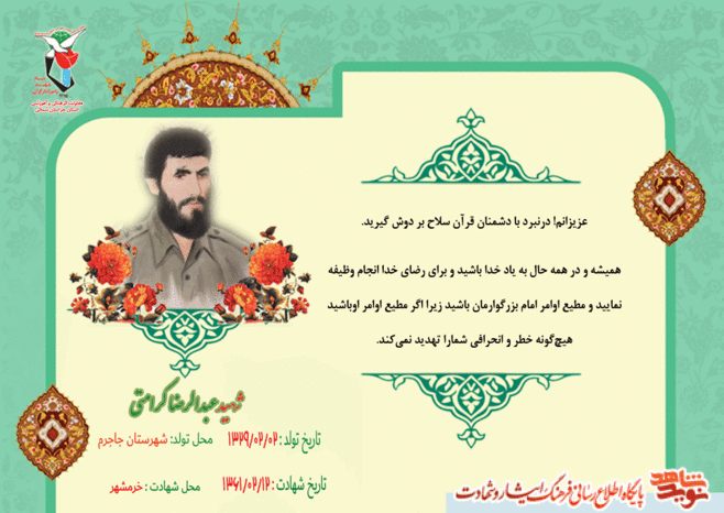 آنچه ملاحظه میکنید فرازی از وصیتنامه این شهید گرانقدر است که به مناسبت گرامیداشت سوم خرداد، روز آزادسازی خرمشهر پوستر تقدیم حضور مخاطبان میشود.