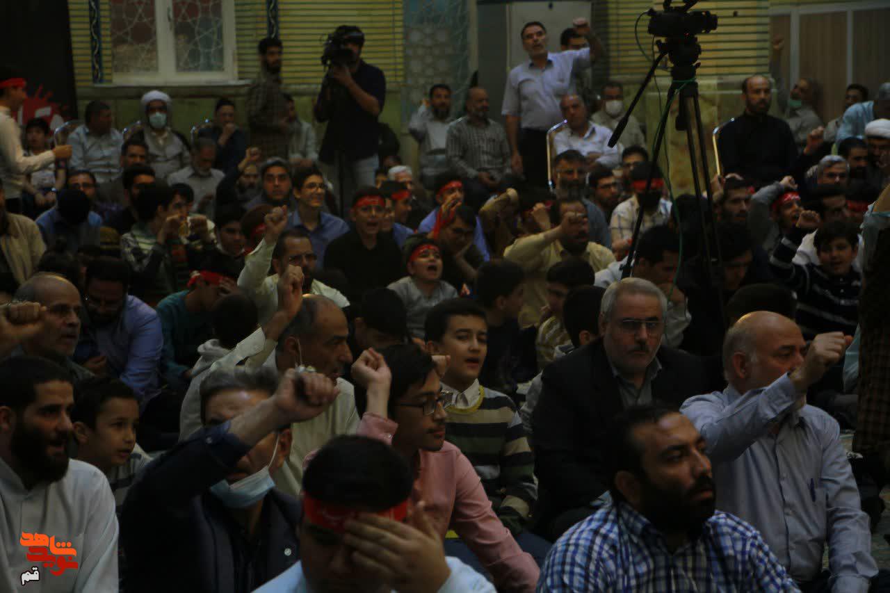 گفتنی است در این آیین که با حضور پرشور و حماسی اقشار مختلف مردم عزادار حادثه تروریستی شاهچراغ حرم احمد بن موسی و با حضور مسئولین لشکری و کشوری قم، و با حضور هیئت محبین اهلبیت(ع) برگزار شد؛ جناب سرهنگ حاج تقی جعفری از فرماندهان هشت سال دفاع مقدس به روایت گری دوران دفاع مقدس و حاج علی مالکی نژاد به مداحی در وصف مصیبت اهل بیت پرداختند.