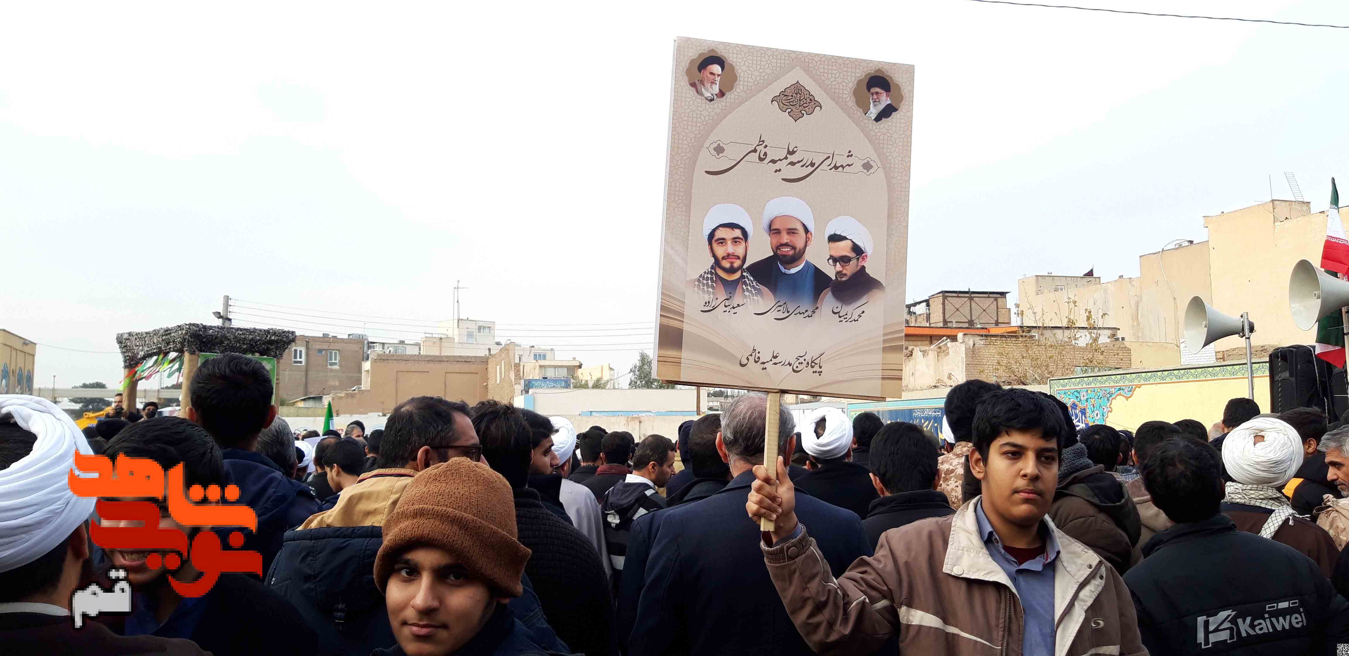 این مراسم با مرثیهسرایی به مناسبت ایام فاطمیه و در بزرگداشت مقام شهید و نیز شعارهای کوبنده تشییعکنندگان در محکومیت جنایات استکبار جهانی و اغتشاشگران همراه بود.