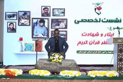 بنیاد شهید و امور ایثارگران استان خوزستان نشست تخصصی بررسی ترویج فرهنگ ایثار و شهادت از منظر قرآن کریم را با سخنرانی استاد حوزه و دانشگاه حجت السلام و المسلمین اسکندری در پانزدهمین نمایشگاه قرآن و عترت برگزار کرد. گوشه هایی از این مراسم را از دریچه دوربین نوید شاهد ببینید.