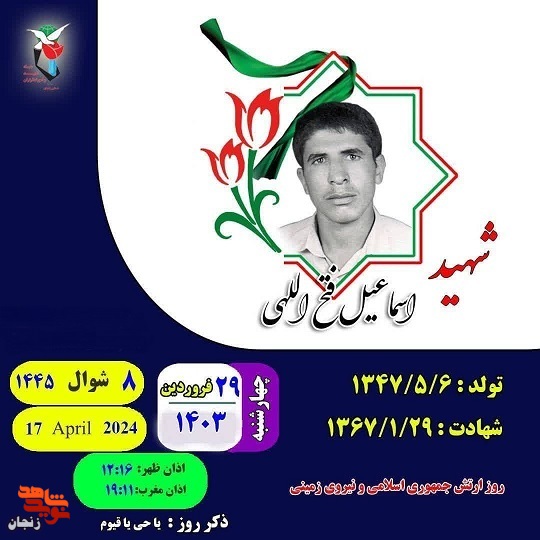برکت روزمان را به یاد شهید «اسماعیل فتح اللهی» رقم بزنیم. او پنجم شهریور ۱۳۴۷، در شهر سلطانیه از توابع شهرستان ابهر به دنیا آمد.
