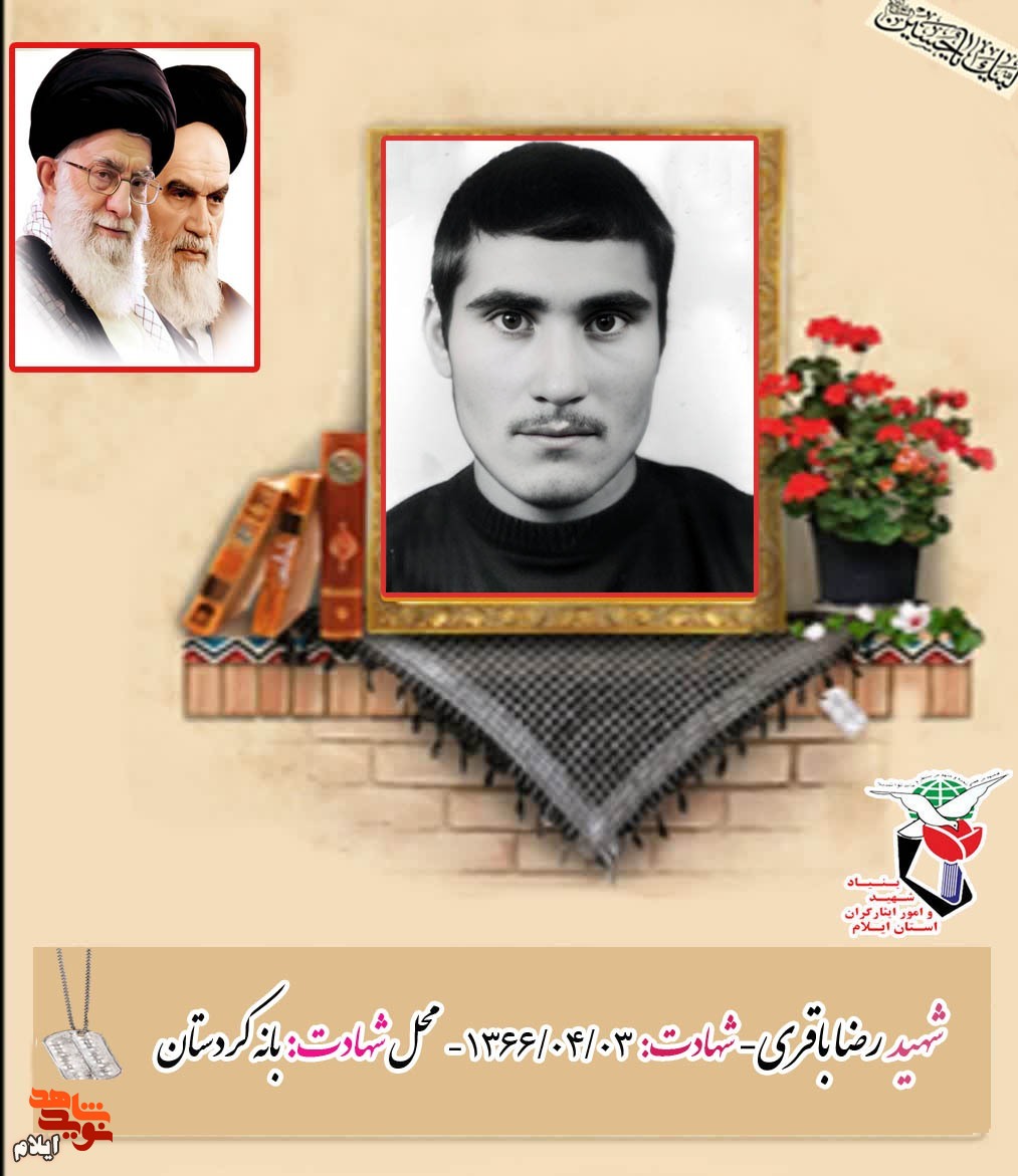 به گزارش نوید شاهد ایلام، شهید «رضا باقری» فرزند کبود اول فروردین ۱۳۴۶ در شهرستان آبدانان دیده به جهان گشود. وی که دارای سواد خواندن و نوشتن بود با رسیدن به سن قانونی انجام خدمت نظام وظیفه سربازی در زمان جنگ تحمیلی به سپاه پاسداران انقلاب اسلامی پیوست. راهی جبهههای نبرد با دشمن بعثی گردید تا آنکه سرانجام سوم تیر ماه ۱۳۶۶ طی عملیات نصر ۴ در منطقه بانه کردستان مورد اصابت ترکش قرار گرفت و به فیض شهادت رسید. مزار این شهید گرانقدر در گلزار شهدای شهرستان آبدانان قرار دارد.