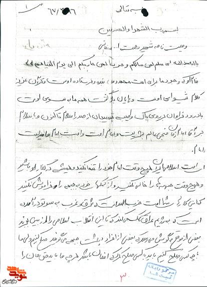 نوید شاهد مازندران، شما را به مطالعه و دست نوشتههای این شهید والامقام دعوت میکند.